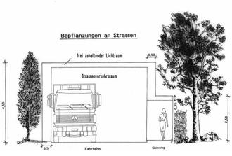 Wir bitten Sie darauf zu achten, dass das Lichtraumprofil, wie oben beschrieben (und unten bildlich dargestellt), freigehalten wird. Die Straßenverkehrsbehörde wird zukünftig weitere Kontrollen durchführen und im Bedarfsfall die Grundstückseigentümer kontaktieren.