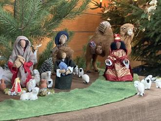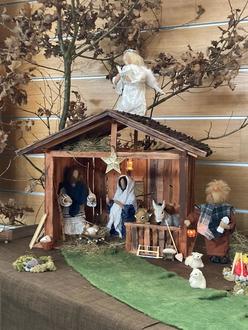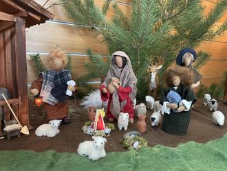 Zudem noch einige Infos zu der ausgestellten Krippe am Weihnachtsbasar, welche von den Vereinsmitgliedern Anita und Michael Jansen zur Verfügung gestellt wurde. Besonders an dieser Krippe ist, dass die Hl. Familie, die Hirten und der Verkündigungsengel durch Biblische Erzählfiguren (Egli-Figuren) dargestellt werden. Diese Figuren sind im Inneren aus einem Sisaldraht hergestellt und daher beweglich. Biblische Erzählfiguren haben kein Gesicht und müssen ihre Handlungen und Absichten durch die Körpersprache ausdrücken. Dadurch wirkt die dargestellte Szene der Geburt Jesu lebendiger und ansprechender. Auch hierfür ein großes Dankeschön an Familie Jansen !