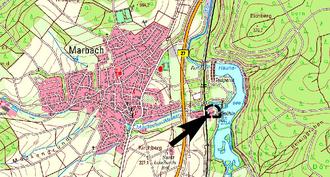 | Abbildung: | Geltungsbereich der 1. Änderung des Bebauungsplanes Nr. 7 im Ortsteil Marbach (Abbildung: unmaßstäblich, genordet) |
