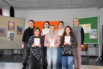Alle Teilnehmerinnen, die sich als Klassensiegerinnen für den Schulentscheid qualifiziert hatten, erhielten aus den Händen der Schulleiterin Anke Schüler eine Urkunde und ein Buchpräsent, gespendet von der Buchhandlung Uptmoor. Die Jury bestand neben der Schulleiterin aus der Deutschlehrerin Natalie Sänger, Deutschlehrer Jürgen Hannig, stellvertretende Schulsprecherin Medina Halilovic und Lehramtsreferendarin Alexandra Zeller. Die Gesamtorganisation lag bei der Deutsch-Fachleiterin Melanie Krenzer, die diesen Vorlesewettbewerb für alle Sechstklässlerinnen und Sechstklässler zu einem vorweihnachtlichen Event werden ließ.