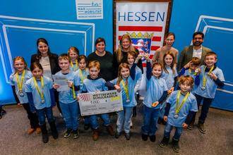 Besonders hervorgetan hat sich die Grundschule Marbach aus der Gemeinde Petersberg, die hessenweit den ersten Platz in der Kategorie „Größtes Team“ erringen konnte. Die beeindruckenden 156 Prozent Teilnehmende im Verhältnis zur Gesamtschülerzahl kamen zustande, weil es der Schule gelungen ist, neben den engagierten Schülerinnen und Schülern auch Eltern und Lehrkräfte zum Mitradeln zu motivieren. „Ich bin sehr stolz auf unsere Schülerinnen und Schüler der Grundschule Marbach,“ berichtet Petersbergs Bürgermeisterin Claudia Brandes, die die Schule zur Prämierung nach Wiesbaden begleitete. „Nachhaltige und selbstständige Mobilität ist ein wichtiges Thema für unsere gesamte Gemeinde. Umso mehr freue ich mich, dass unsere Kinder und Jugendlichen mit so viel Begeisterung dabei sind und zeigen, wie lebendig dieses Thema bei uns vor Ort gelebt wird.“