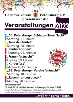 Ab sofort können alle Karten zu den Veranstaltungen des Carnevalverein Petersberg e.V. unter der Telefonnummer 0661-76182 vorbestellt werden.