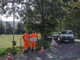 Kevin Bartosch (links) und Denny Lange (rechts) gehören zu dem Team, das die Radwege neu beschildert.