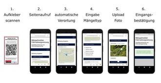 Um alle Beschilderungen zukünftig in einem verkehrsgerechten Zustand erhalten zu können, werden sie mit einem QR-Code gekennzeichnet. Damit kann der Bürger oder die Bürgerin einen Schaden oder einen Mangel online melden. Die Meldung geht übern eine automatisch generierte E-Mail beim Landkreis ein und wird dort geprüft.