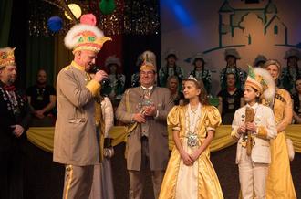 Prinz Ralf (Ralf Bott) der 72. von Ball und Mikrofon und seine Prinzessin Ann-Kristin (Ann-Kristin Leipold) rockten gemeinsam mit ihren Adjutanten, den Hofdamen und umrahmt von der 1. Tanzgarde, den Green Diamonds sowie den CVP Shotzz die Bühne.