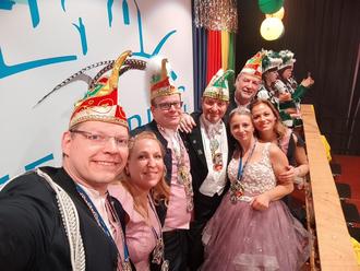 Die närrischen Hausherren, der Carnevalverein Petersberg, zogen natürlich mit ihrem eigenen Musikzug ein, in ihrem Gefolge sämtliche Aktiven. An der Spitze der Petersberger Narrenschaar begrüßte Prinz Andy der 70. vom kreativen Haus- und Wagenbau mit seiner Prinzessin Trixi, den Adjutanten Detlef und Falko sowie den Hofdamen Simone und Janine das Publikum.