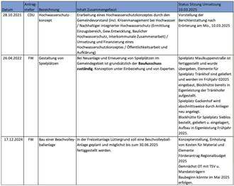 | - | Offene Anträge oder Status der Beschlüsse |