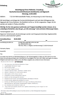 Wenn Sie Interesse an einem Motorsägenkurs oder Waldbauernbrief haben, finden Sie unter https://fbg-hessische-rhön.de/vordrucke Informationen zu möglichen Terminen. Es lohnt sich immer mal wieder nachzuschauen, da durch die Verlinkung auf die entsprechenden Anbieter eine ständige Aktualisierung erfolgt.