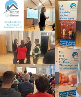 Als nächster Infoabend bietet der Ortsverein Haus und Grund Rhön einen Vortrag an zum Thema: „Feuchtigkeit/Schimmel“ mit dem Sachverständigen für Schäden an Gebäuden, Herrn Andreas Kümmel am 26.06.2025 um 18:00 Uhr.