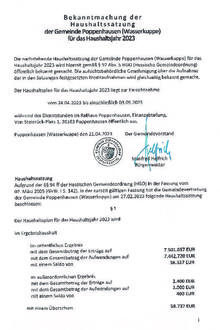Bekanntmachung Haushaltssatzung für das Haushaltsjahr 2023