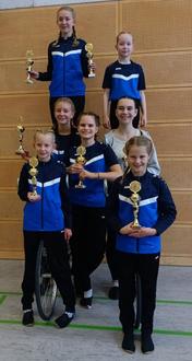 Poppenhausens Kunstradsportlerinnen standen 22-mal auf dem Treppchen und erzielten mit ihrem tollen Starts 7-mal Gold, 9-mal Silber und 6-mal Bronze. Bezirksmeisterinnen wurden Lucia Polivka und Martha Breidung jeweils im 1er-Kunstrad. Vizemeisterinnen Josefine Scheuthle und Rosa Breidung, sowie Leni und Rosa Breidung im 2er-Kunstrad. Die beiden hatten im Februar schon einen 1. Platz mit nur 0,45 Punkten Abzug eingefahren. Zur Schüler-Hessenmeisterschaft am 25. Mai hatten sich Lucia, Josefine, Martha und Rosa qualifiziert. Bei den jungen Sportlerinnen in ihren jeweiligen Altersklassen einer starken hessischen Konkurrenz. Rosa zeigte sich hier sehr nervenstark und verpasste mit nur 3,46 Punkten Abzug den dritten Platz ganz knapp.