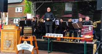Zu Beginn des Marktes hatte Bürgermeister Helfrich gemeinsam mit den Ehrengästen und begleitet von einem Harmonikaspieler Walter Langgut die längste Biertrage der Rhön vom Rathaus an den verschiedenen Ständen vorbei zur Bühne auf dem Marktplatz getragen, wo bereits der Musikverein Cäcilia Poppenhausen den musikalischen Auftakt machte. Einzige Frau in der Runde der Träger war Johanna Lenhardt aus Oberelsbach in der bayrischen Rhön, die vor wenigen Tagen Vize-Weltmeisterin der Bäcker(innnen) geworden ist. „Wir in der Rhön wissen gutes Brot zu schätzen“, gratulierte auch Brand ihr und auch für Helfrich hatte er lobende Worte: „Du bist einer, der die Rhön in den vergangenen Jahrzehnten mit vorangebracht hat. Er kenne kaum eine Gemeinde in meinem Wahlkreis, die so viele Feste hat wie Poppenhausen", sagte Brand, der zudem das Sprichwort zitierte: Wer nicht genießt, wird ungenießbar…“