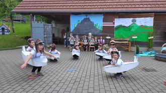 Die Kinder boten neben zahlreichen Tänzen eine Theateraufführung dar. Dazu betrieben die Erzieherinnen mit den Kindern in den Wochen vorher etwas Heimatkunde. So wurden etwa Ausflüge zu besonderen Orten, wie zur Wasserkuppe oder zur Ebersburg unternommen. Spaziergänge durch den Ort Poppenhausen gehörten ebenso zum Programm der Erkundung und damit zum Kennenlernen der Heimatgemeinde. Das angeeignete Wissen präsentierten die Darsteller während der Aufführung in Form eines Tanztheaters und ernteten dafür viel Applaus.