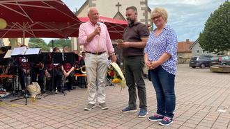 Zu Beginn des Konzertabends waren ab 18.30 Uhr trotz unwägbarer Wettervoraussage die Festplatzgarnituren auf dem Marktplatz gut besetzt und die beiden Gaststätten hatten viele Plätze reserviert.
