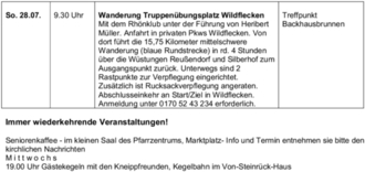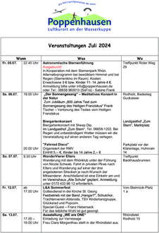 Veranstaltungsplan Juli mit Tränkhofer Kapellenfest