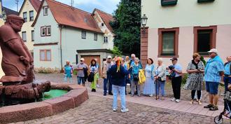 Die Stadtführer gaben sehr sachkundig und abwechslungsreich interessante Einblicke in die lebhafte Geschichte der Stadt Lohr am Main, wo im Stadtkern noch die alten Wehrmauern zu erkennen waren. U.a. wurde darauf hingewiesen, dass die Märchenfigur „Schneewittchen“ eine Lohrerin gwesen sei.