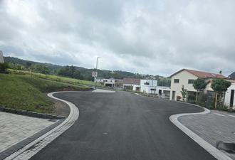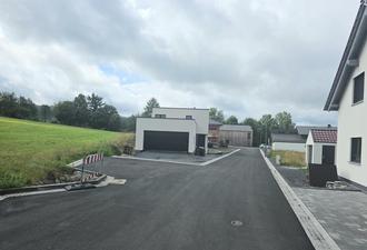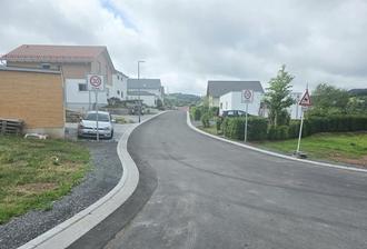 Nachdem im kompakten Zeitraum von ca. 6 Jahren die Bebauung in den beiden Bauabschnitten erfolgte, und die Wohnhäuser bezogen wurden, war die Zeit gekommen, den Endausbau der Anliegerstraße zu planen, auszuschreiben, zu vergeben und durchzuführen. Diese Leistungen wurden vom Planungsbüro Schott in Hünfeld erbracht, mit dem die Gemeinde bereits langjährige positive Erfahrungen sammeln konnte. Das günstigste bzw. wirtschaftlichste Kostenangebot machte die Fa. SST – Steinbachgruppe (Straßen- und Asphaltbau) aus dem fränkischen Salz. Die Ausbaukosten liegen bei ca. 350.000,-€.