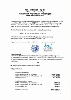 Vorheriger Artikel: Niederschrift über die Sitzung der Gemeindevertretung der Gemeinde Poppenhausen (Wasserkuppe) am 10.07.2024
