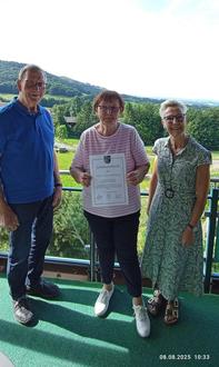 Das Jubiläum nahm die Tourist Mitarbeiterin Silvia Kern mit dem Auszubildenden Leon Modrzyk zum Anlass, den Stammgästen für die langjährige Treue und Verbundenheit zu Poppenhausen und der Rhön zu danken. In einer kleinen Feierstunde überreichte sie dem Ehepaar als Jubiläumsgeschenk eine Urkunde sowie zwei Tassen mit Poppenhausen Logo.