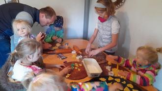 Am Samstag, den 17.09.22 trafen sich zahlreiche Kinder und Eltern auf dem Bauernhof im Feuerloch. Die Veranstaltung wurde vom Rhönklub Poppenhausen organisiert, von Fr. Goldbach durchgeführt und für Mitglieder subventioniert.Der Name Feuerloch kommt daher, das früher in dem Gebiet geköhlert wurde. Begeistert waren die Kinder und Eltern von dem Kälbchen, das erst ein Tag vorher geboren war. Nach der Stallbesichtigung kneteten die Kinder fleissig Teig und schnipselten die Zutaten für Pizza und Apfelkuchen.Die Sauerteigbrote wurden phantasievoll geformt und schon bald duftete es verlockend.