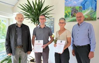 Gruppenfoto - Gemeinde v.l.: Erster Beigeordneter Peter Schramm, Andreas Hamm, Martina Schleicher u. Manfred Helfrich