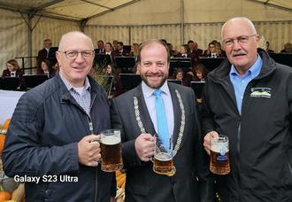 Steffen Malzer, 1. Bürgermeister Ostheim v.d.Rhön (Mitte), sein langjähriger Vorgänger Ulrich Waldsachs (links) und Bürgermeister Manfred Helfrich freuen sich über die längst zur Tradition gewordene Markt-Initiative.