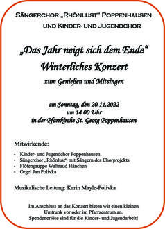 Winterkonzert Sängerchor „Rhönlust“ Poppenhausen und Kinder- und Jugendchor