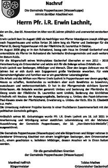 Nachruf Herrn Pfr. i. R. Erwin Lachnit