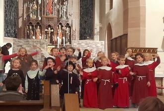 Nach dem die 65 Kindergartenkinder gemeinsam mit dem Musikverein in die vollbesetzte Kirche eingezogen waren, begrüßte Pfarrer Jörg-Stefan Schütz die Kinder mit ihren Eltern und stimmte mit Gebet und Gesang in die kleine Feierstunde ein. Die Besucher folgten gespannt dem St. Matin-Musical, welches mit hervorragenden Sprechrollen, Bewegungs- und abwechslungsreichen Gesangeinlagen der Schulanfängerkinder dargestellt wurde. Die Einlagen ihres Nachwuchses honorierten die Eltern abschließend mit großem Applaus.