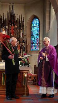 In der Messe am letzten Sonntag, wurde Herr Georg Hahl für seine 40-jährige Küstertätigkeit mit der Sturmiusmedaille ausgezeichnet. Das ist die höchste Auszeichnung des Bistums. Herr Hahl engagiert sich sehr für unsere Kirchengemeinde. Er ist auch Kommunionhelfer und war in früheren Jahren im Pfarrgemeinderat. Die Kirchengemeinde St. Georg Poppenhausen dankt ihm sehr herzlich für seinen Einsatz.