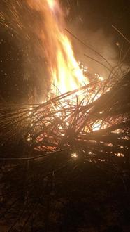 Wir entzünden unser Hutzelfeuer am Kühl unterhalb der Ludwig-Nüdling-Schutzhütte bei Einbruch der Dunkelheit.