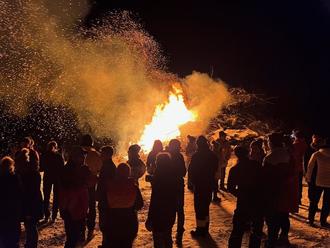Das Hutzelfeuer wird dann abends bei Einbruch der Dunkelheit gegen 18:30 Uhr entzündet. Für die Bewirtung sorgt die Freiwillige Feuerwehr.