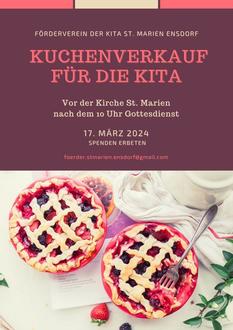 Kuchenverkauf zugunsten des Fördervereins der Katholischen Kita St. Marien in Ensdorf