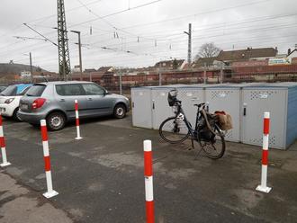 Vor mittlerweile sieben Jahren wurden die ersten abschließbaren Fahrradboxen für radelnde Bahnpendler/innen am Ensdorfer Bahnhof installiert. Der Vorplatz der Radgaragen wurde vor kurzem großzügig mit Pollern abgesperrt, was ein bequemes Rangieren der Räder ermöglicht.