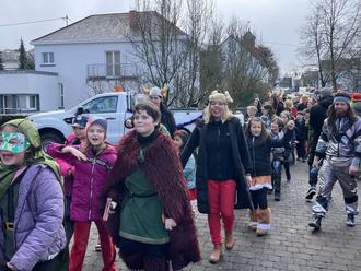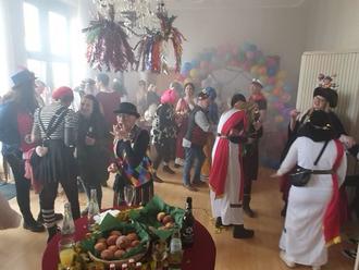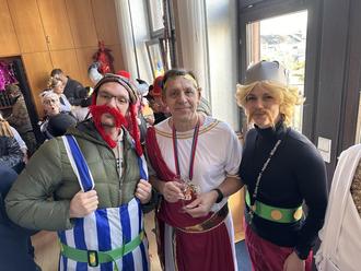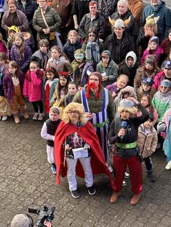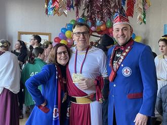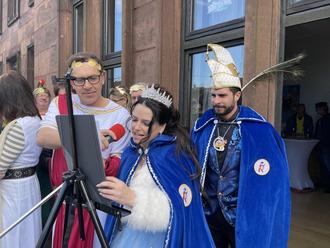 (Das Prinzenpaar tauscht Blicke, grinst und tritt vor.)