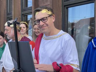 Statthalter (Bürgermeister) auf der Rathaustreppe: