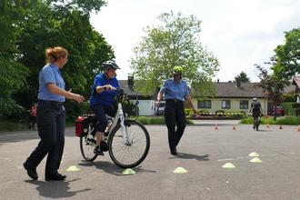 Nach kurzen theoretischen Einführungen wird mit dem eigenen Fahrrad dann geübt. Trainiert wird insbesondere das Anfahren, Bremsen und Kurvenfahren, aber auch die Koordination und Geschicklichkeit.
