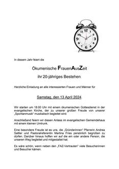 | 18.00 Uhr | Ökumenischer Gottesdienst FAZ zum 20-jährigen Bestehen |