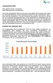 wie in den vergangenen Jahren so ist es mir auch dieses Jahr wichtig, Ihnen heute die finanzielle Situation unserer Gemeinde Ensdorf für das Haushaltsjahr 2025 - aber auch die Perspektive - in einem Kurzabriss darzustellen. Nach wie vor stehen wir vor immensen Herausforderungen, die es gemeinsam zu bewältigen gilt, um die finanzielle Handlungsfähigkeit unserer Gemeinde zu sichern. Die vorliegenden Zahlen verdeutlichen, dass wir trotz aller bisherigen Bemühungen weiterhin mit strukturellen Defiziten konfrontiert sind, die auf steigende Ausgaben, insbesondere aber auf rückläufige Einnahmen, zurückzuführen sind.