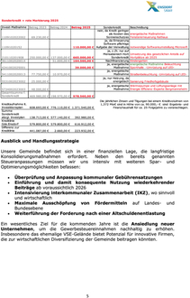 Das strukturelle Defizit, das zunächst auf 1.662.597,76 € taxiert wurde, konnte durch eine Anpassung der Defizitobergrenze auf Landesebene von 797.000 € auf 865.597,76 € reduziert werden. Dies bedeutet jedoch keine langfristige Entlastung, sondern lediglich eine kurzfristige Maßnahme zur Bewältigung akuter finanzieller Herausforderungen. Allerdings sehe ich hier nach der Einschätzung der Kommunalaufsicht - zumindest für das nächste Jahr – Licht am Ende des Tunnels.