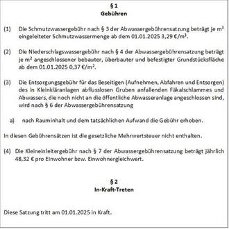 Der Bürgermeister nimmt Bezug auf die Erläuterungen und gibt kurze Detailinformationen. Es liege aus der Sitzung des Werksausschusses eine einstimmige vorberatende Beschlussfassung vor. Die Abwassergebühren würden auf 3,29 €/m³ ansteigen, im Gegenzug werde die Niederschlagswassergebühr auf 0,37 €/m² gesenkt. Zum einen sei der einheitliche Verbandsbeitrag durch den EVS erhöht worden, zum anderen führen auch allgemeine Kostensteigerungen – etwa in der Energiewirtschaft oder durch Tariferhöhungen – zu einer Anpassungsnotwendigkeit.