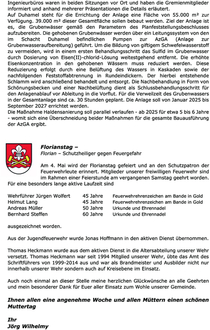 Am 4. Mai wird der Florianstag gefeiert und an den Schutzpatron der Feuerwehrleute erinnert. Mitglieder unserer freiwilligen Feuerwehr sind im Rahmen einer Feierstunde am vergangenen Samstag geehrt worden.
