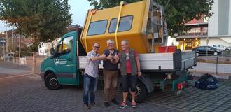 Anlieferung der Zelle vor 5 Jahren: Harald Ludwig, Dieter Rust, Günter Felten