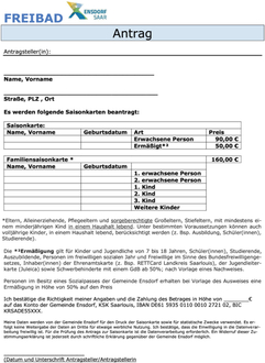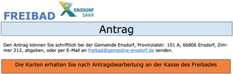 | Die Karten erhalten Sie nach Antragsbearbeitung an der Kasse des Freibades |