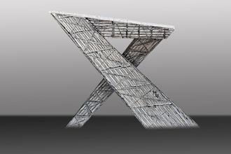 Marianne Feld zeigt fünf Umsetzungen des Saarpolygons als Statuen in Edelstahl, jeweils 20 cm hoch, in Mischtechnik, koloriert. Die Werke zeichnen sich durch verschiedene Struktur- und Farbvariationen aus.