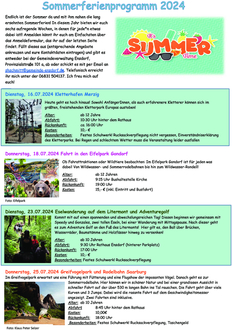 | Besonderheiten: | Festes Schuhwerk! Rucksackverpflegung, Einverständniserklärung der Eltern (siehe Anhang) |