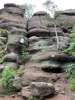Von dort geht es dann zu unserem Ziel, dem Altfels, der mit einer Portion Mut bestiegen werden kann. Denn dieser reckt sich am Zugang ca. 15 m teilweise senkrecht in die Höhe (Sicherung mit Handläufen aus Stahlseil). Oben angekommen hat man dann einen fantastischen Ausblick - allerdings ohne Geländer und Sicherung! Man sollte also schwindelfrei sein.