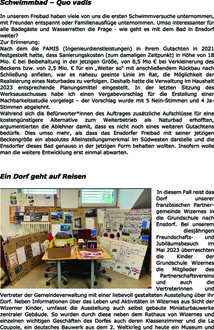 In unserem Freibad haben viele von uns die ersten Schwimmversuche unternommen, mit Freunden entspannt oder Familienausflüge unternommen. Umso interessanter für alle Badegäste und Wasserratten die Frage - wie geht es mit dem Bad in Ensdorf weiter?