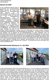 In der konstituierenden Sitzung des Gemeinderates am 11. Juli sind neben den verschiedenen ratsüblichen Entscheidungen zu Beginn einer Amtsperiode auch die Beigeordneten für die nächsten 5 Jahre gewählt worden. Als Erster Beigeordneter wurde Oliver Bommersbach, CDU, gewählt; erneut zum Beigeordneten bis 2029 wurde Heinrich Becker von der FWGE e.V gewählt.