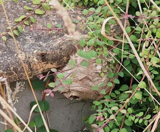 Vereinzelt sind Primärnester der asiatischen Hornisse in Carports, Wintergärten, Schuppen, Behältnissen/Hohlräumen jeglicher Art und auch versteckt in Hecken zu finden. Sie wachsen derzeit kontinuierlich und können die Größe eines Hand- oder Fußballs erreichen. Mehrere Dutzend Arbeiterinnen leben aktuell mit ihrer Königin in dem Nest.